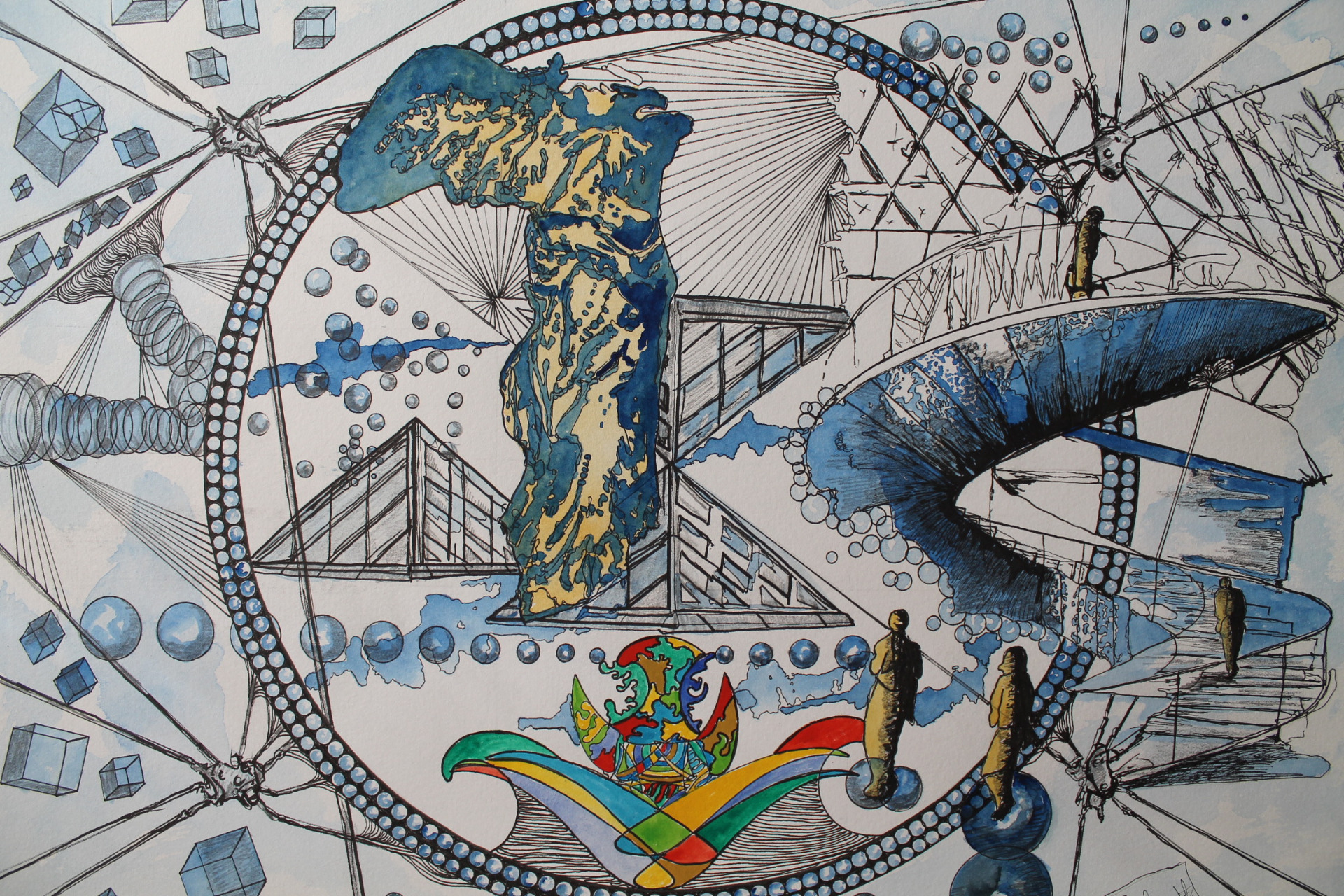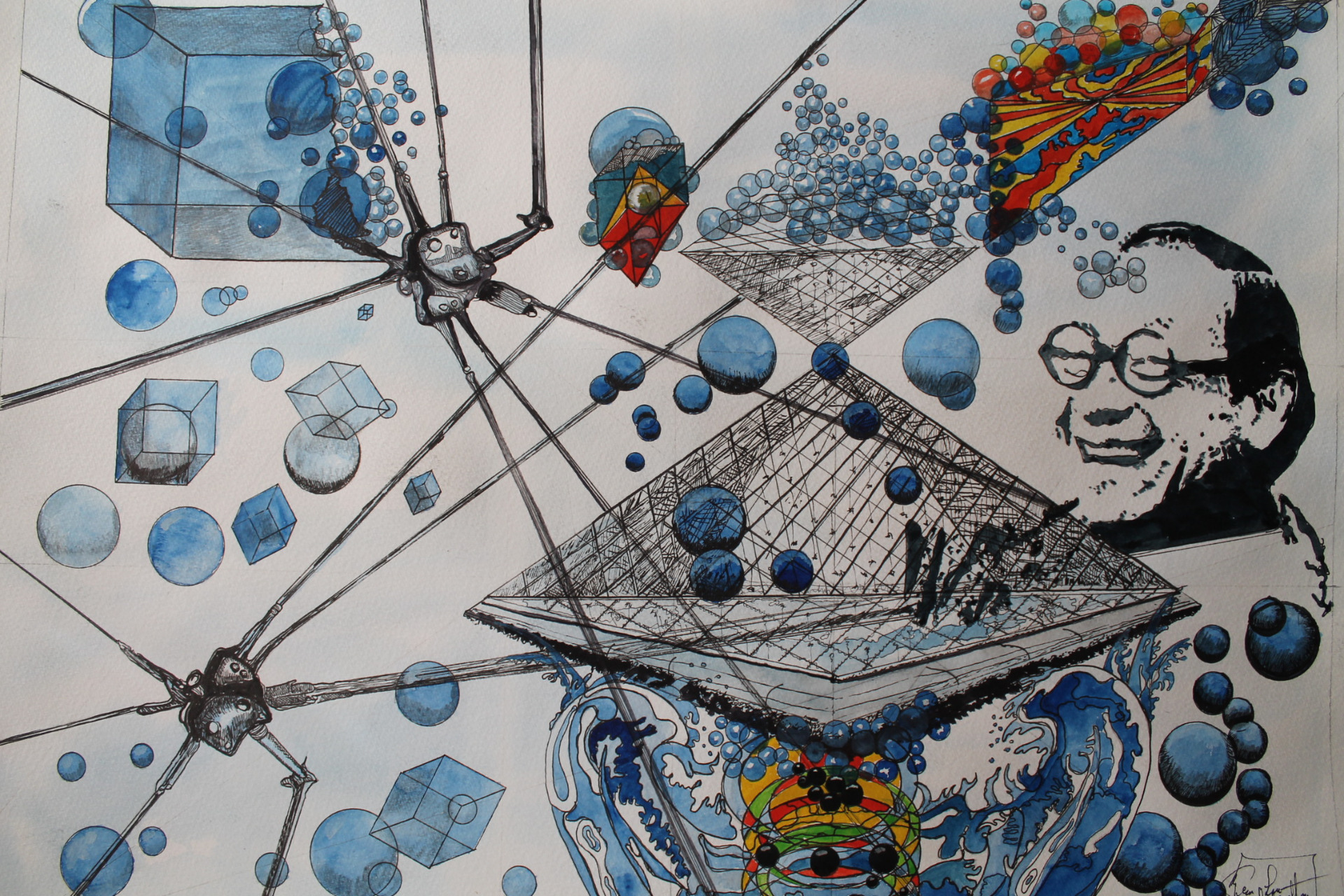 aquarelle et encre de Chine de la collection "POLYEDRAL AND BUBBLES WORLD"